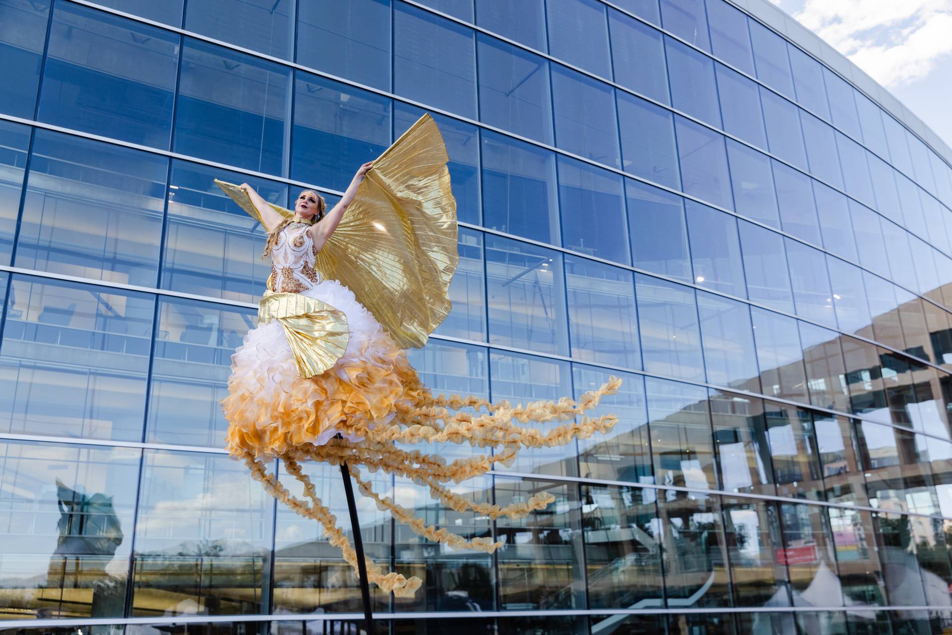 Urban art reaches new heights. Seven feet of pure artistic energy, our stiltwalkers combine street art aesthetics with theatrical flair. Watch as they tower above the crowd, bringing vibrant urban culture to life.